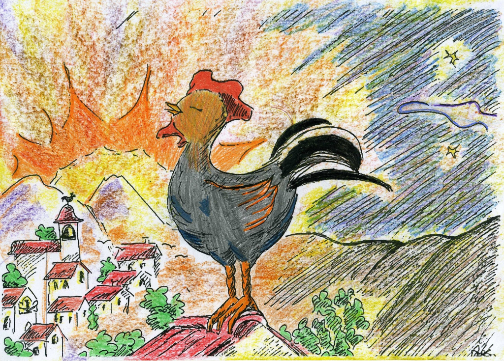 Aquel pollo se subía a los árboles y empezaba a graznar como urraca, a fuerza de exigirse un día se descubrió cantando como pájaro. El gallo más viejo le recriminó que no estuviese practicando el sagrado canto, que anunciaba la llegada del sol, y él se subió al tejado, tomo aire, batió sus alas y se fue volando hacia la montaña.