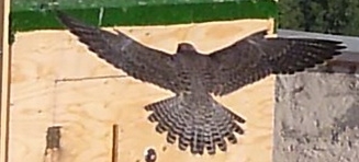 Un halcón que vuela y chilla, avisando que está allí, o que está desconcertado, porque miedo, es algo que no tienen los halcones …