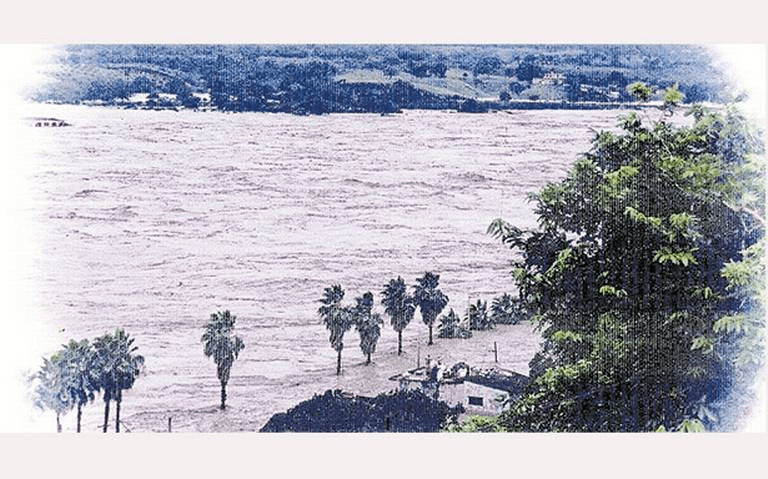 El agua llegó sin aviso. Su esposa lo despertó porque el perro no cejaba de ladrar. Al levantarse para buscar la lámpara se hundió en el barro. «¡Dios! ¡La presa se rompió!» Tomó el machete, el lazo y pensó refugiarse con su familia en casa de su compadre Filemón que había construido su casa mirando el cerro, pero cambió de idea, el arroyo no le dejaría paso.