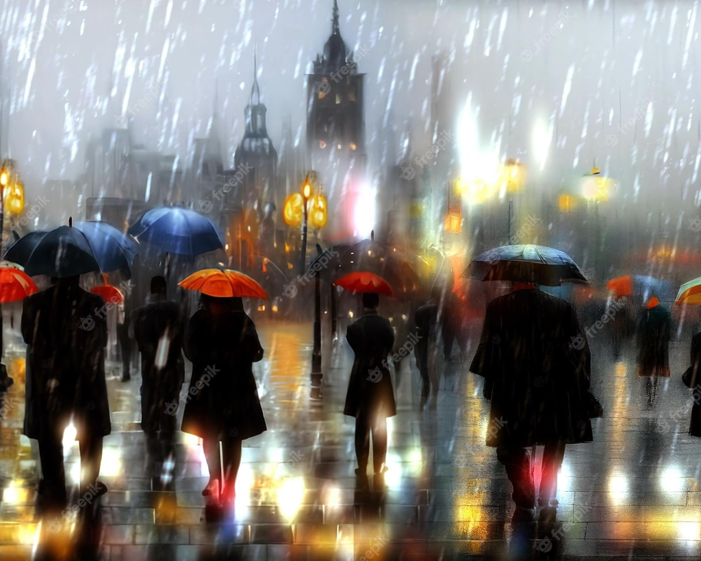 Asomada a la ventana de un quinto piso siento la brisa de la lluvia. Abajo hay un desfile de sombrillas de colores. Con empeño encuentro la gorra de Fernando Valenzuela. El bombín de Charles Chaplin. La gorra cazadora de cuadros de Sherlock Holmes. Allá va el de Indiana Jones. ¡Oh my God! el pulóver de Cortázar y la capa de Arreola. Allá, a lo lejos aparece el sombrero de la reina Isabel y al lado, otro de paja, ¿será el espantapájaros? No, es Chencha, porque camina como Chencha. Noooo es mi madre y yo ni siquiera he tendido la cama.